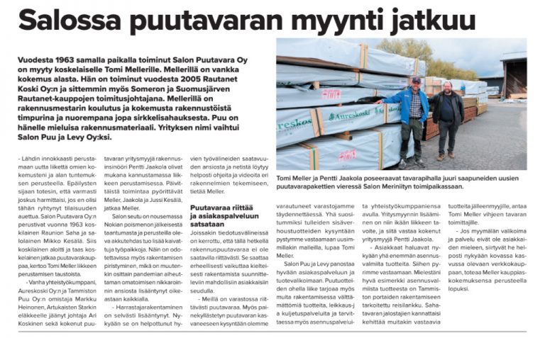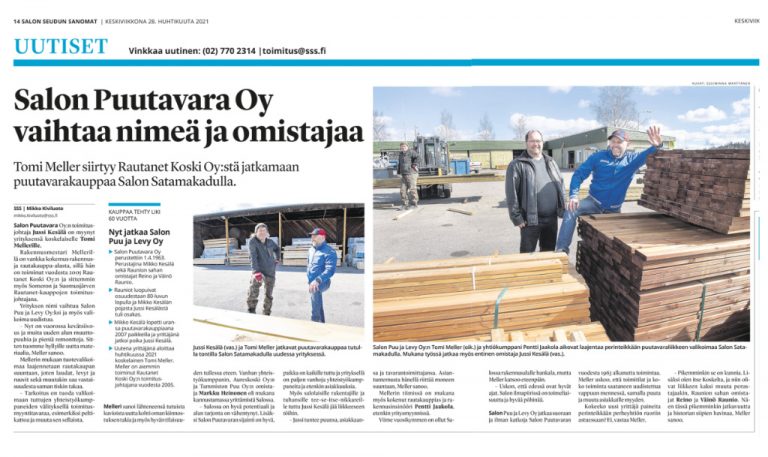 Salon Puutavara Oy vaihtaa nimeä ja omistajaa